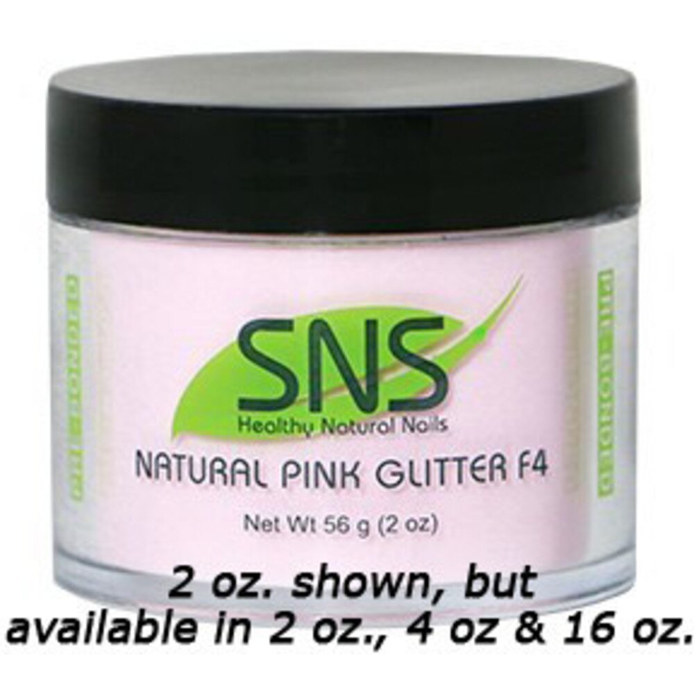 SNS Natural Pink Glitter F4 Dipping Powder – Pre-Bonded / 2 oz. by SNS. Natural Pink Glitter F4 – Pre-Bonded. Treat yourself to a natural look. This French Manicure delight has less glitter, so your true beauty will be all that glistens in the light. (Organically Processed Chemicals)